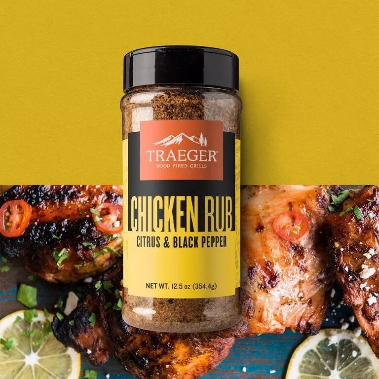 From whole roasted chicken to turkey burgers, give all your poultry a flavor boost with Traeger Chicken Rub. Black pepper and chili powder team up with citrus and cane sugar for a deliciously balanced addition to chicken and other poultry. New packaging, same great flavor.