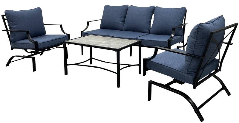 Includes (2) Stationary Rocker Chair (1) Cushion Sofa and (1) Tile Top Coffee Table