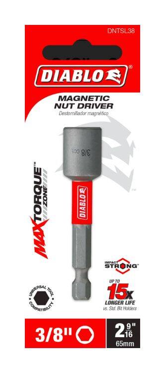 Diablo's range of magnetic nut drivers delivers maximum performance and extreme durability in driving hex nuts or self-tapping screws. A high-strength, permanent magnet provides a secure, anti-wobble grip when fastening screws and nuts into a variety of applications. MaxTorque Zone ultimate torque resistance absorbs torque for less stress at the tip when tightening and removing nuts and screws. This range is Impact Strong™, delivering increased shank stability and durability in cordless and corded impact and drill drivers.