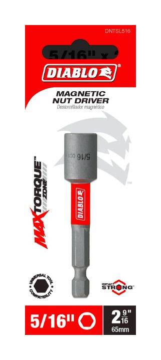 Diablo's range of magnetic nut drivers delivers maximum performance and extreme durability in driving hex nuts or self-tapping screws. A high-strength, permanent magnet provides a secure, anti-wobble grip when fastening screws and nuts into a variety of applications. MaxTorque Zone ultimate torque resistance absorbs torque for less stress at the tip when tightening and removing nuts and screws. This range is Impact Strong™, delivering increased shank stability and durability in cordless and corded impact and drill drivers.