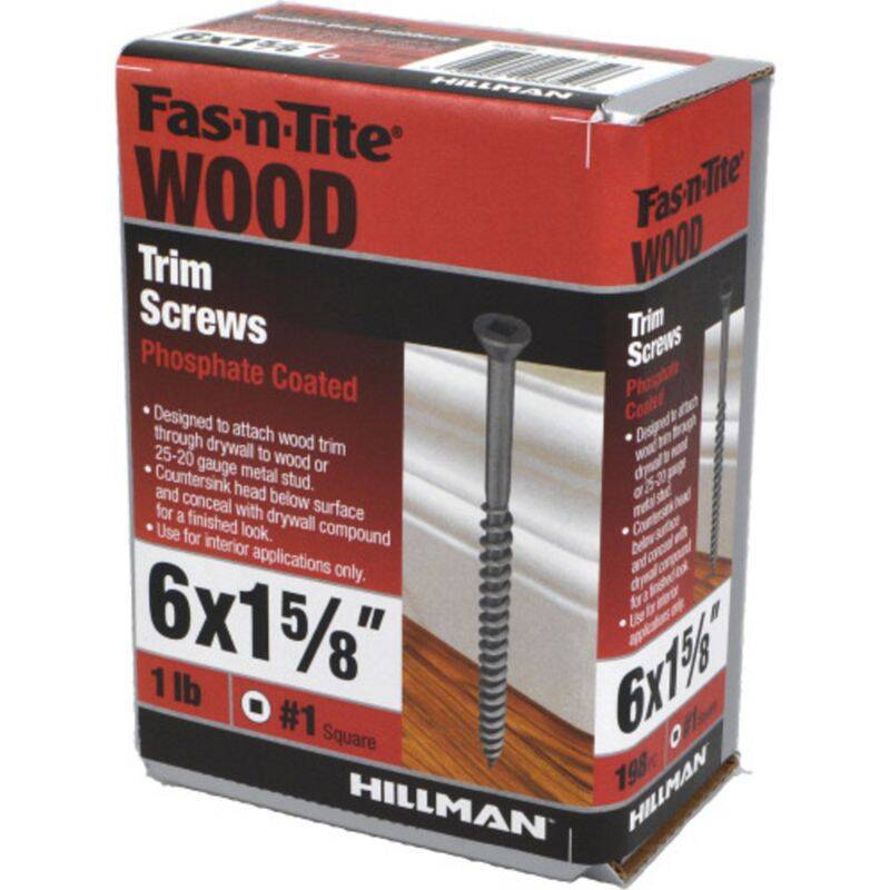 #6 X 1-5/8-Inch Fas-N-Tite Square Drive Black Phosphate Trim Screws 1-Pound