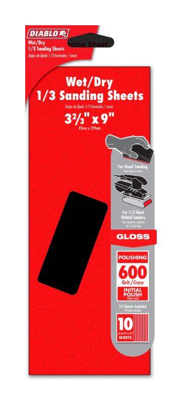 Diablo's premium wet/dry sanding sheets include break-through innovations that improve performance, extend sanding life and increase productivity. Featuring a premium silicone carbide blend, these sheets provide a superior polished finish, faster and offer an extra-long sanding life in wet and dry sanding applications. Clog-SHIELD™, Diablo's own blend of grinding agents, reduces loading thus maximizing productivity. The superior grain bonding system, ENDURA-BOND™, provides Diablo's sanding sheets with longer life and extreme durability. These sanding sheets are designed for maximum performance whether wet or dry when hand sanding or using orbital sanders.