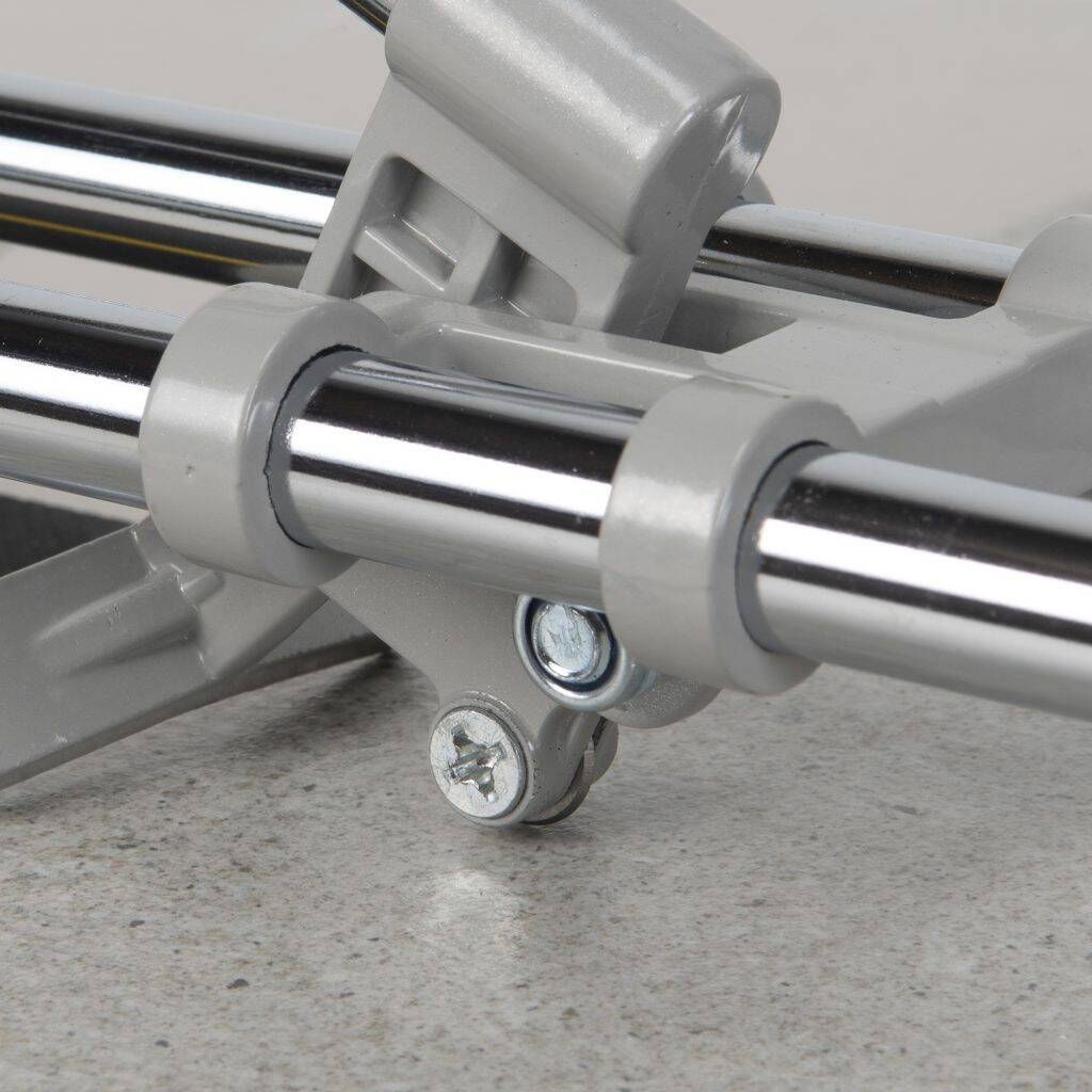 The QEP 20 in. Ceramic and Porcelain Tile Cutter cuts a variety of wall and floor tiles. The solid, chrome-plated steel rails offer smooth scoring, while the welded center breaker beam and level foam side pads provide clean cuts and a level surface. This cutter also includes an adjustable rip guide designed to help make repetitive cuts in tile faster and easier.