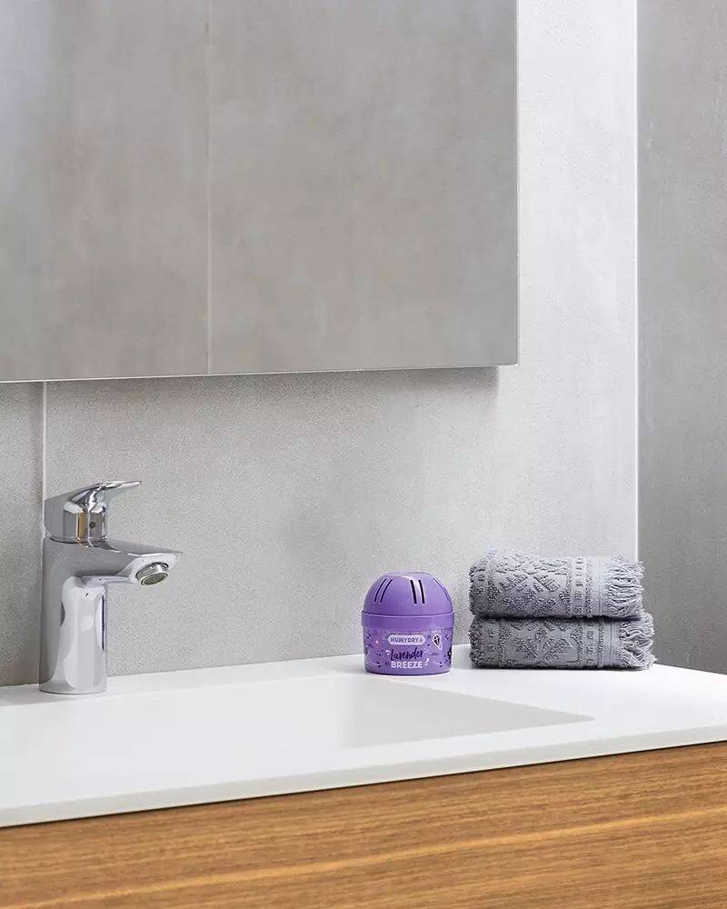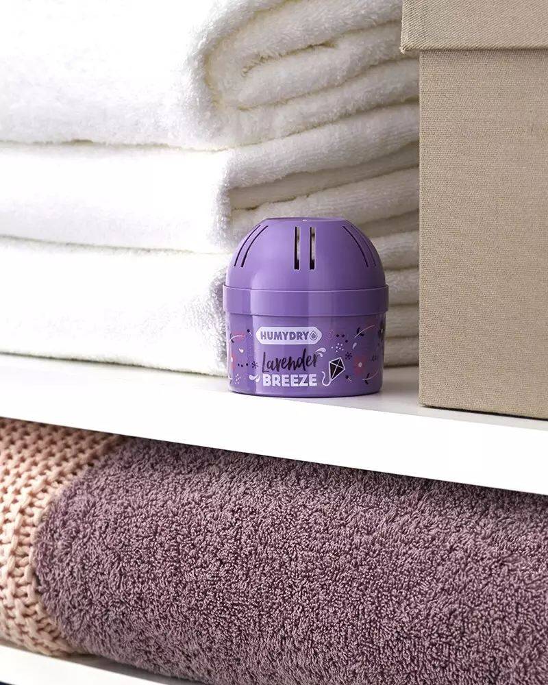 HUMYDRY® Mini Lavender moisture absorber & air freshener is 2 functions in one.  It absorbs moisture and freshens the air at the same time. Our Moisture Absorber works as a non-electric dehumidifiers to help lower excess humidity which protects against condensation and musty odors and creates a healthy indoor environment (40-60%). The air freshener has a refreshing floral fragrance.