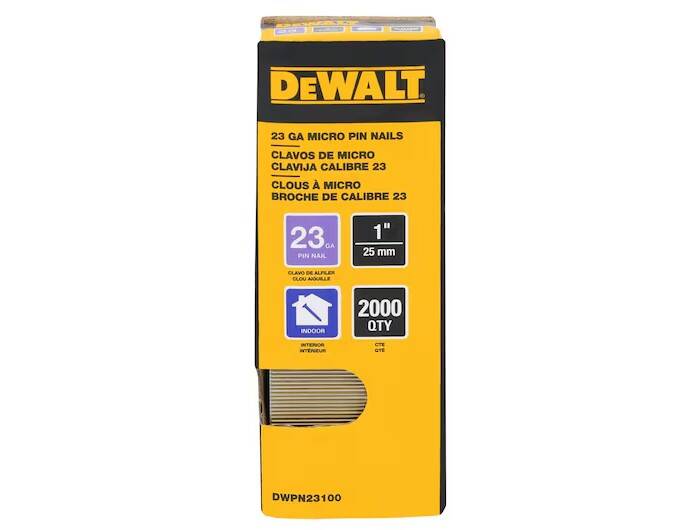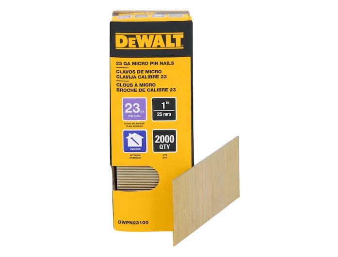 DEWALT's 23 Gauge Pin Nails are manufactured to our highest standards and engineered to work seamlessly with DEWALT 23 Gauge Pin Nailers. Choose from the full range of DEWALT 23 gauge pin nail lengths available (sold separately) to complete various finishing projects.