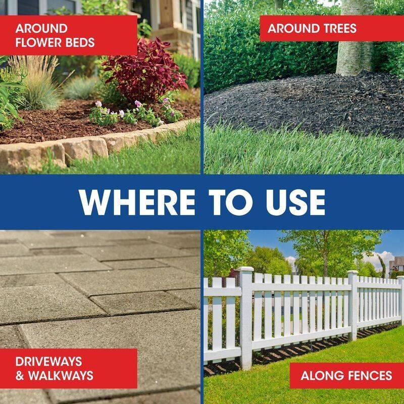 - Use in flower beds, around trees, along fences, driveways and walkways, freshly cut woody stumps, in large areas such as lawn replacement, garden plot preparation, and other areas of your yard