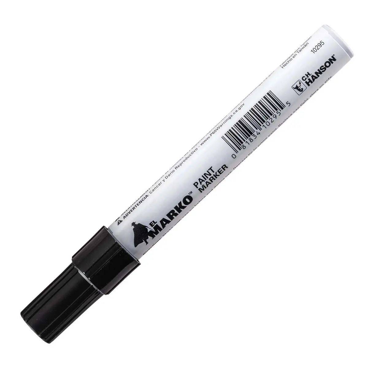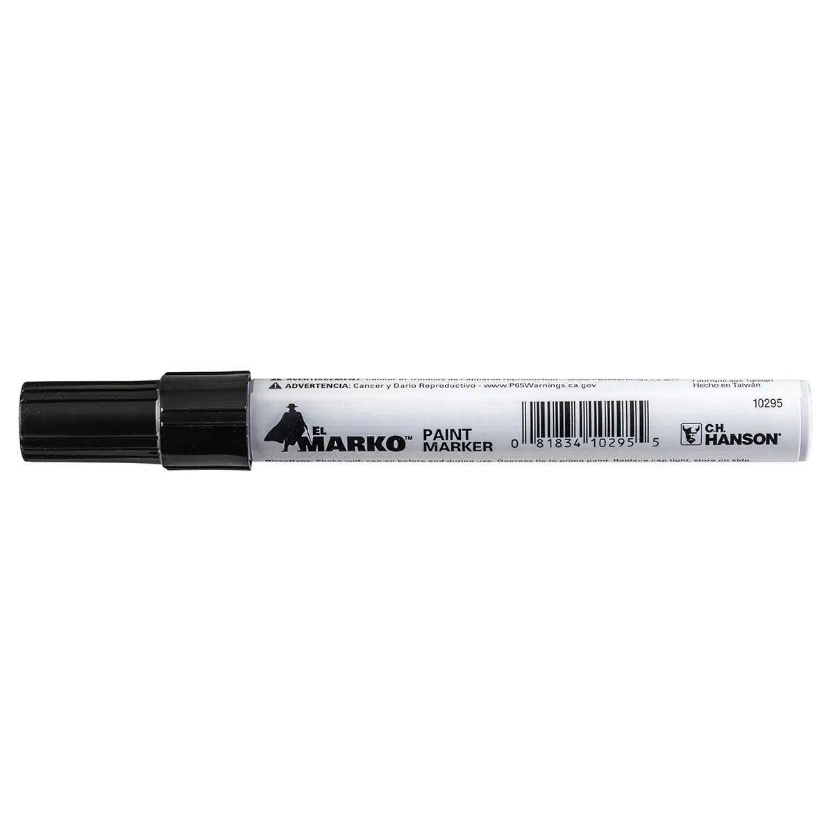 The C.H. Hanson, El Marko® Black Paint Marker delivers a highly visible, permanent mark on any surface. Oily, rusty, and even greasy films can't stop this marker from delivering a clear and distinct mark. This marker is perfect to use with stencils, as the paint effectively resists water, wear, and UV fading.