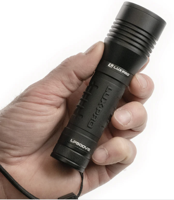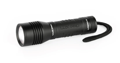 LUXPRO pocket size 330 lumen LED handheld flashlight with TackGrip. A compact flashlight that puts off a clean light beam. With 4 lighting modes, users can get the light they need for any situation. Access 330 lumens on High, 120 on Medium, and 35 on Ultra-Low. The Ultra-Low setting gives you an extended runtime of over 15 hours. This is crucial for emergency situations.