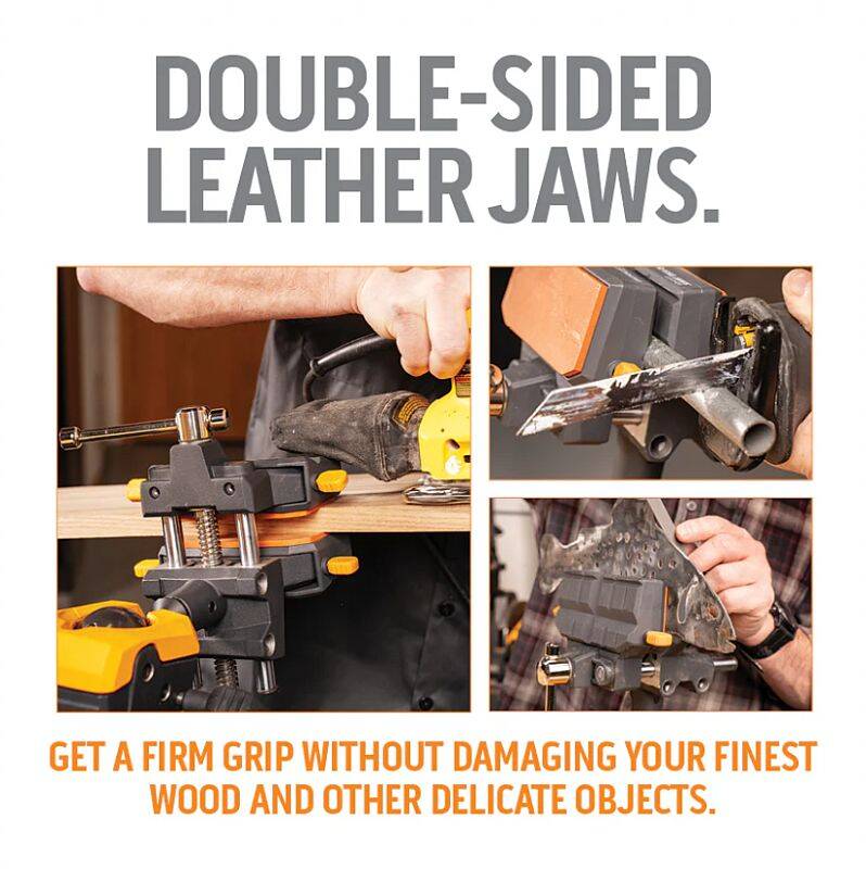 Like all IQ Vise Jaws, these jaws are purpose-built and double-sided, providing added functionality and project capability. The genuine leather side holds fine wood firmly without damage, ensuring that your project looks great and doesn’t require sanding from metal vise jaw indentations. The leather side is also ideal for damage-free holding of valuable items such as sterling silver, brass, fine furniture, and many others.