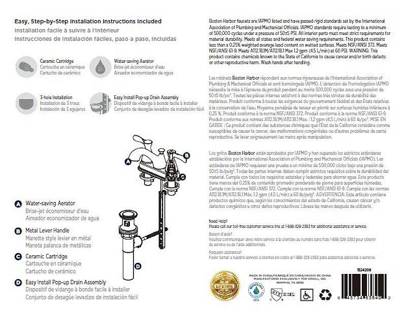 Chrome 2-Handle Bathroom Sink Faucet With Drain, 4 in. Centerset - WaterSense® Certified