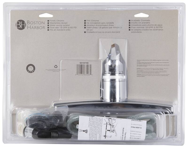 • The kitchen faucet has a water saving aerator