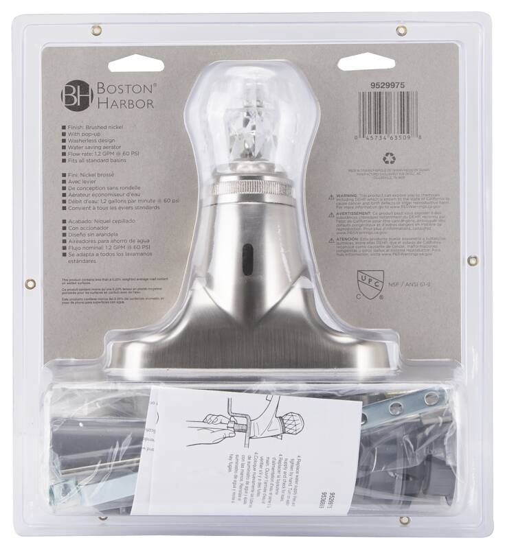 Brushed Nickel 1-Handle Bathroom Sink Faucet With Drain - Non-Metallic, WaterSense® Certified
