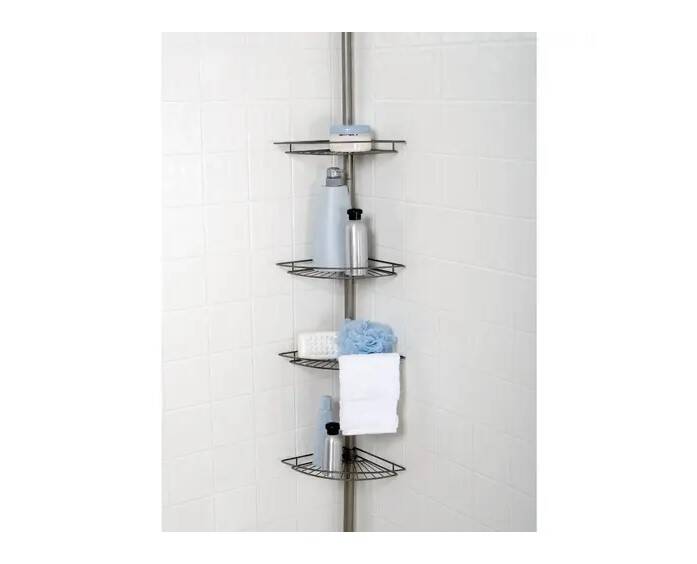 Zenna Home Satin Nickel Corner Shower Tension Pole Caddy