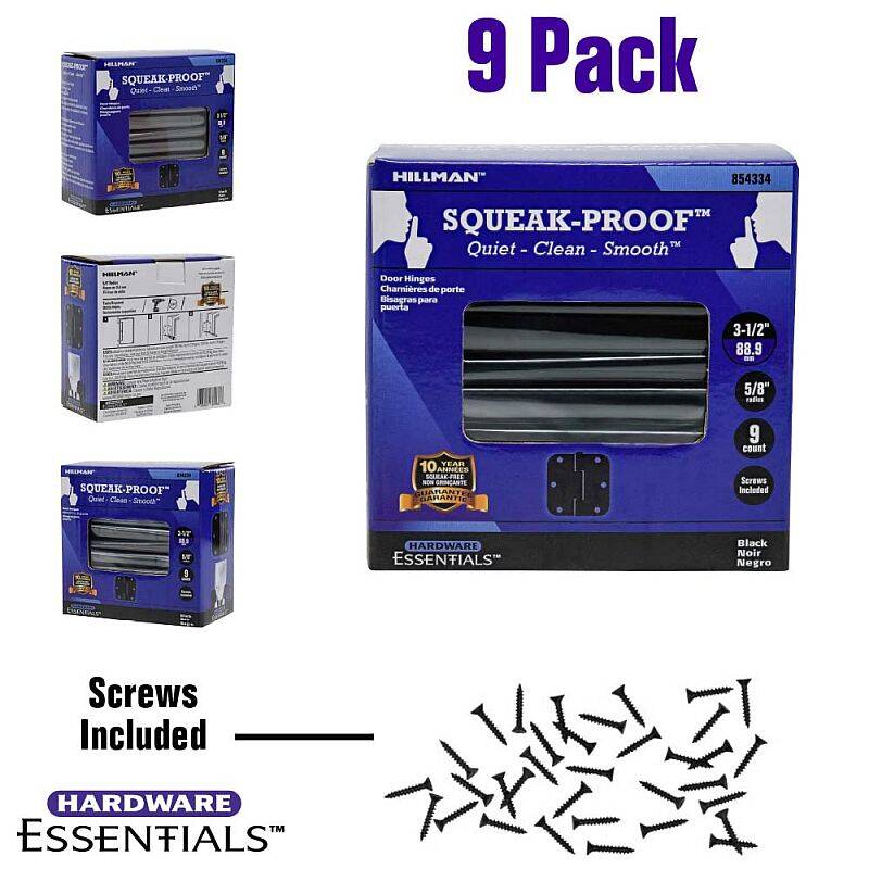 Hardware Essentials Squeak-Proof Black 5/8-Inch Round Corner Door Hinge (3-1/2-Inch) 9-Pack