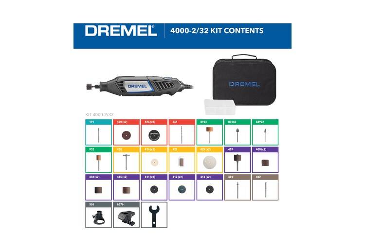 Dremel 4000 Corded Rotary Tool Kit With 2 Attachments And 32 Accessories
