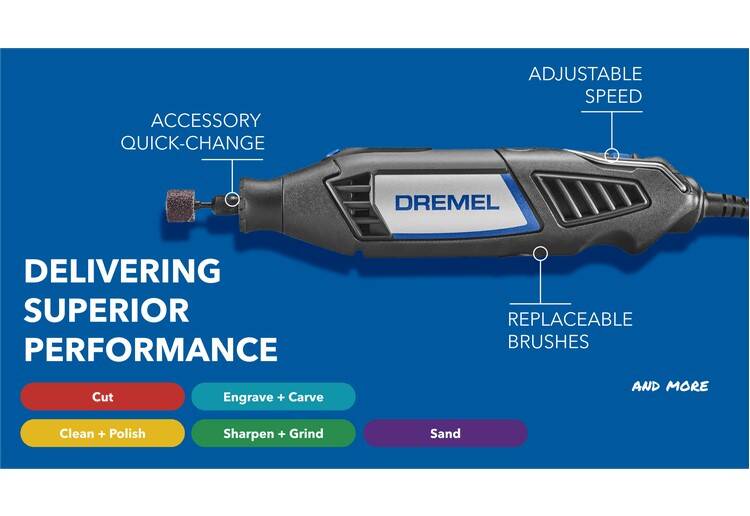 Do it all with just one tool. The key to a perfect result is having maximum control over your project. The Dremel 4000 with interchangeable accessories and attachments will give you just that. The tool has a 360 degree soft grip for greater maneuverability and comfort in any position. Tackle even the smallest and most detailed tasks in awkward and tight spaces. With 5,000-35,000 variable speed control and separate on/off switch, you will always be able to pick up your project right where you left off. Together with the high-performance motor, the electronic feedback consistently gives you maximum force. Sand, grind, cut and more on any material with the same ease.