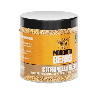 Our unique blend of scent beads are infused with high quality essential oils consisting of Citronella, Lemon Eucalyptus, Lavender, Geraniol and Peppermint. They are 100% natural and 100% biodegradable. Natural Mosquito Repellent Beads.