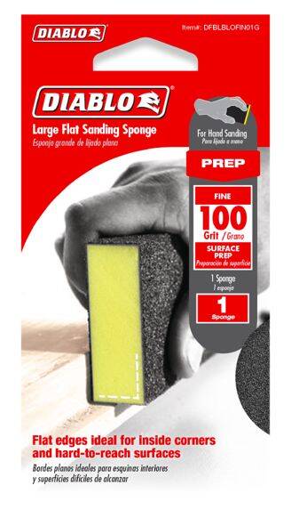 Diablo's premium flat edge sanding sponges include breakthrough innovations for superior sanding performance, extended sanding life and increased hand-sanding productivity. Featuring a premium aluminum oxide blend, these flat sanding sponges remove material faster and offer up to 3X longer sanding life versus standard hand sanding sheets. The flat edges make it easy to access inside corners and hard to reach surfaces and the longer length allow for sanding medium surface areas. The full contact design provides maximum sanding potential by delivering consistent scratch patterns and ultra-smooth finishes. The superior grain bonding system, ENDURA-BOND™, provides Diablo's sanding blocks with longer life and extreme durability.