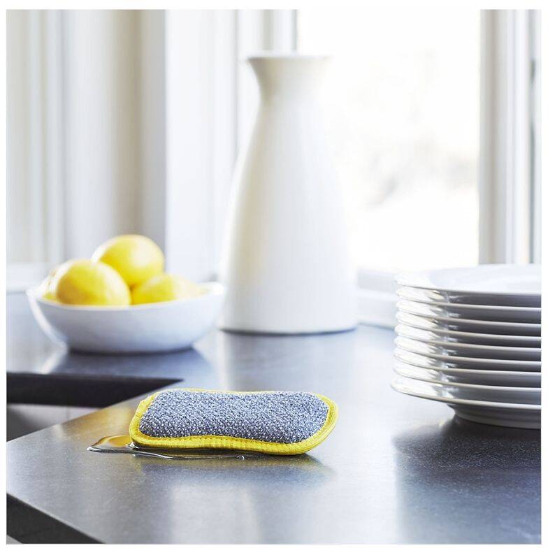 Textured scrubber on one side. Soft and absorbent on the other. The E-Cloth Washing Up Pad does more than an ordinary sponge, with outstanding absorbency and microfiber muscle that removes grime and dried food, all with just water. Microscopic precision-engineered fibers do the grunt work, activated by the world’s best cleaner — water. You don’t even need to add liquid soap. (Love suds? We won’t spoil your fun!). Power through everything in the kitchen sink, from delicate dishware to stubborn, stuck-on leftovers — all without scratching. Then soak up splashes and leftover grease, leaving your sink and counter looking like new. Rinse between chores. Toss in laundry to refresh. That stacks up nicely against the pile of ordinary sponges you might use and toss otherwise. So much simpler and savvier, you might even look forward to washing up.