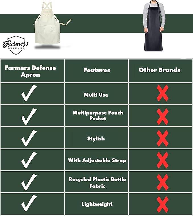 Make all your gardening tasks a breeze. Our Farmers Apron is designed for trimming, gardening, and any other plant tending work. With it's lightweight, waterproof, and stick resistant fabric design plus it's multiple pocks including a dedicated canvas pocket for your trimming shears, this apron will be your best friend in the garden.