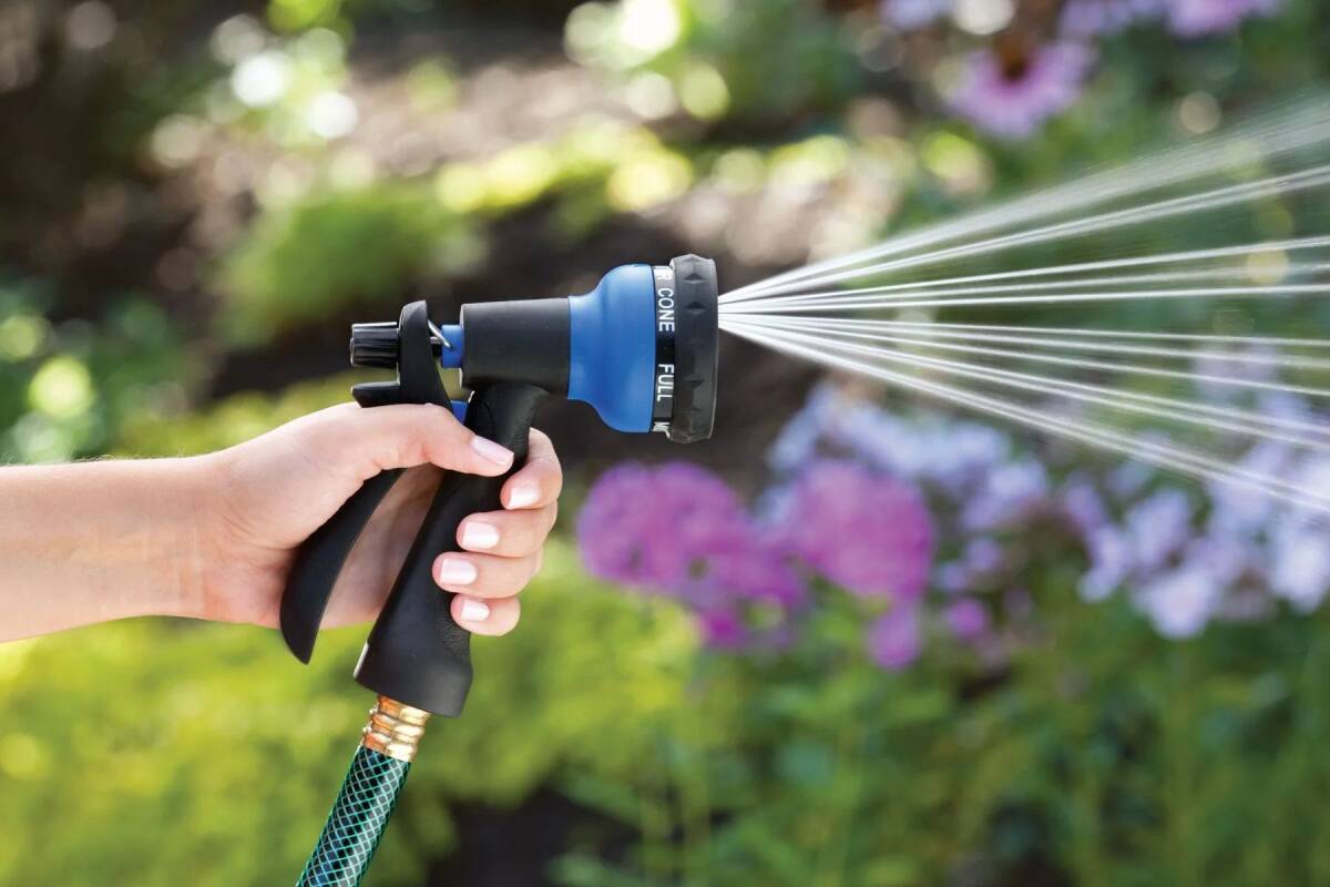 The rear trigger provides maximum flow control, and can also be locked into place for constant spray. This nozzle comes in blue, gray, green and black.