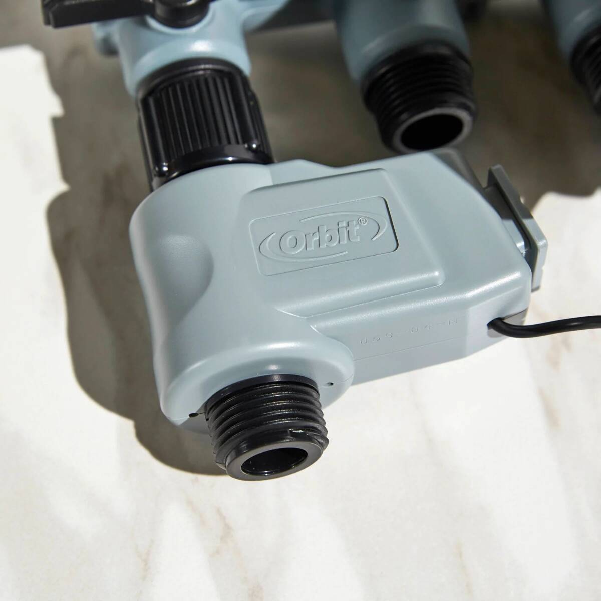The Orbit Hose Faucet Yard Watering Kit is the simplest way we know to create an automatic hose watering system for your yard when an underground system is not feasible. No digging is required to install this watering system that can control up to four watering areas. This kit includes a manifold that converts your single hose faucet into four outlets, two independent valves that are controlled by a timer, and a timer that can program up to four valves (additional valves sold separately.) Simply install it on any standard outdoor hose faucet and set it to water at your convenience. Program it to water during ideal times to minimize evaporation and save yourself time and money while making your yard lush and green. With its large display, oversized dial, and simple controls, programming is fast and easy. The dial has 6 settings: set clock, set day, start time, run time, how often, off, and auto to run watering program. Each program has space for three different start times (A,B, and C) which allows you to create cycle and soak windows that encourage water infiltration into the soil. The timer will automatically “stack” the runtimes so that only one valve is running at any given time. The manual run feature allows you to run one zone, select zones, or all zones for a specified length of time, which is very convenient for zone testing or supplemental watering. It has a rain delay feature at the timer which allows you to skip watering zones for a configurable time when Mother Nature is taking care of the watering. There is no need for tools. Simply plug in the valve, no wiring is required. Each swivel attachment is designed for hand-tightening. The timer's battery case opens with ease, plus, the timer retains the program while changing the batteries. Built with high-quality materials and water-resistant construction, you can count on many years of dependable service.