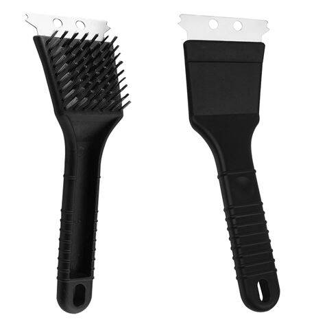 8-Inch Grill Brush With Steel Bristles, Steel Scraper And Contoured Grip Handle