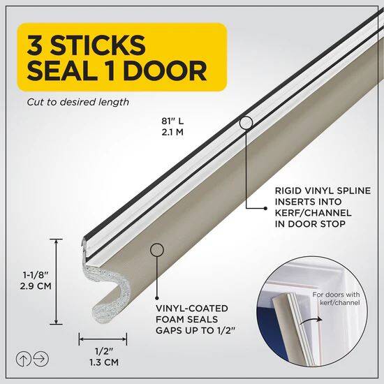 • Easy install - press into kerf/channel in door stop