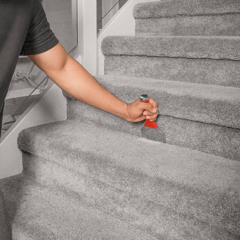 • Heavy-duty blade easily sets carpet into stairway crevices