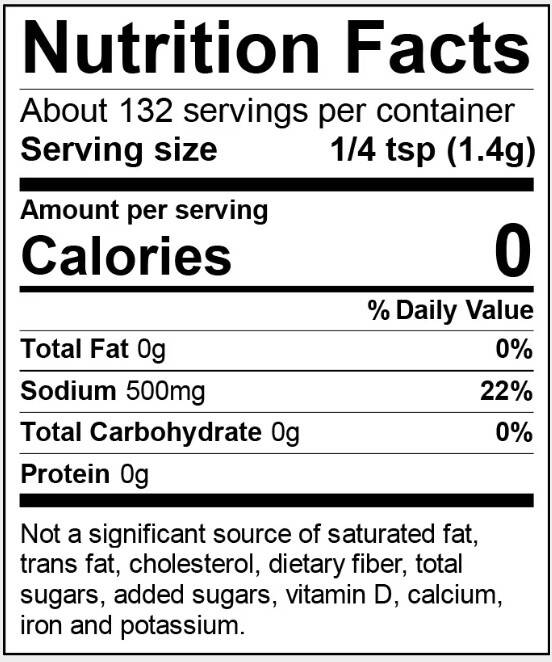 Ingredients Ingredients: Salt, Dehydrated Vegetables (Jalapeño Pepper, Red Bell Pepper) Spice Extractives (Includes Turmeric Extract, Mustard Oil), Spice (Includes Mustard Seed)