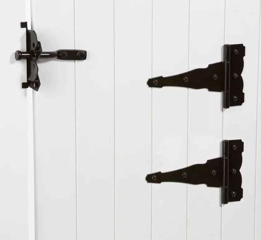 Includes Includes 2 T-hinges, 1 latch with strike, 1 pull, and all mounting hardware for easy installation.