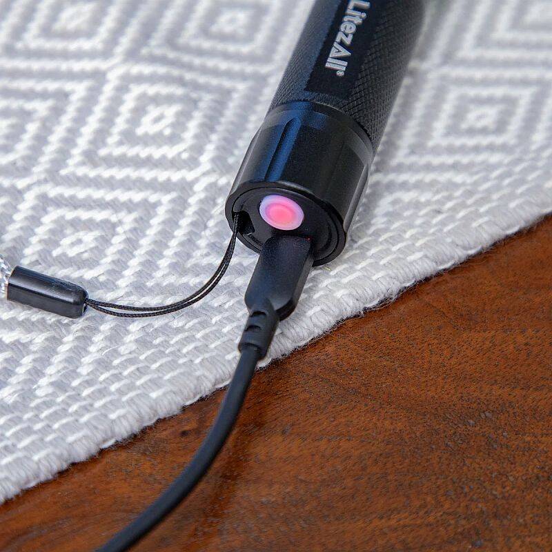 Small but mighty, the LitezAll Rechargeable Mini Tactical Flashlight packs a punch. Three light modes include high and low brightness, and white strobe. Rated at up to 60 max lumens in the high setting and 25 max lumens on low, you can expect up to 4 hours of continuous light. A push/pull focus beam and lanyard (removable) round out the details. The Rechargeable Mini Tactical Flashlight can be charged from any USB power source and includes its own charging cable. It's made of durable aluminum and is weather resistant.