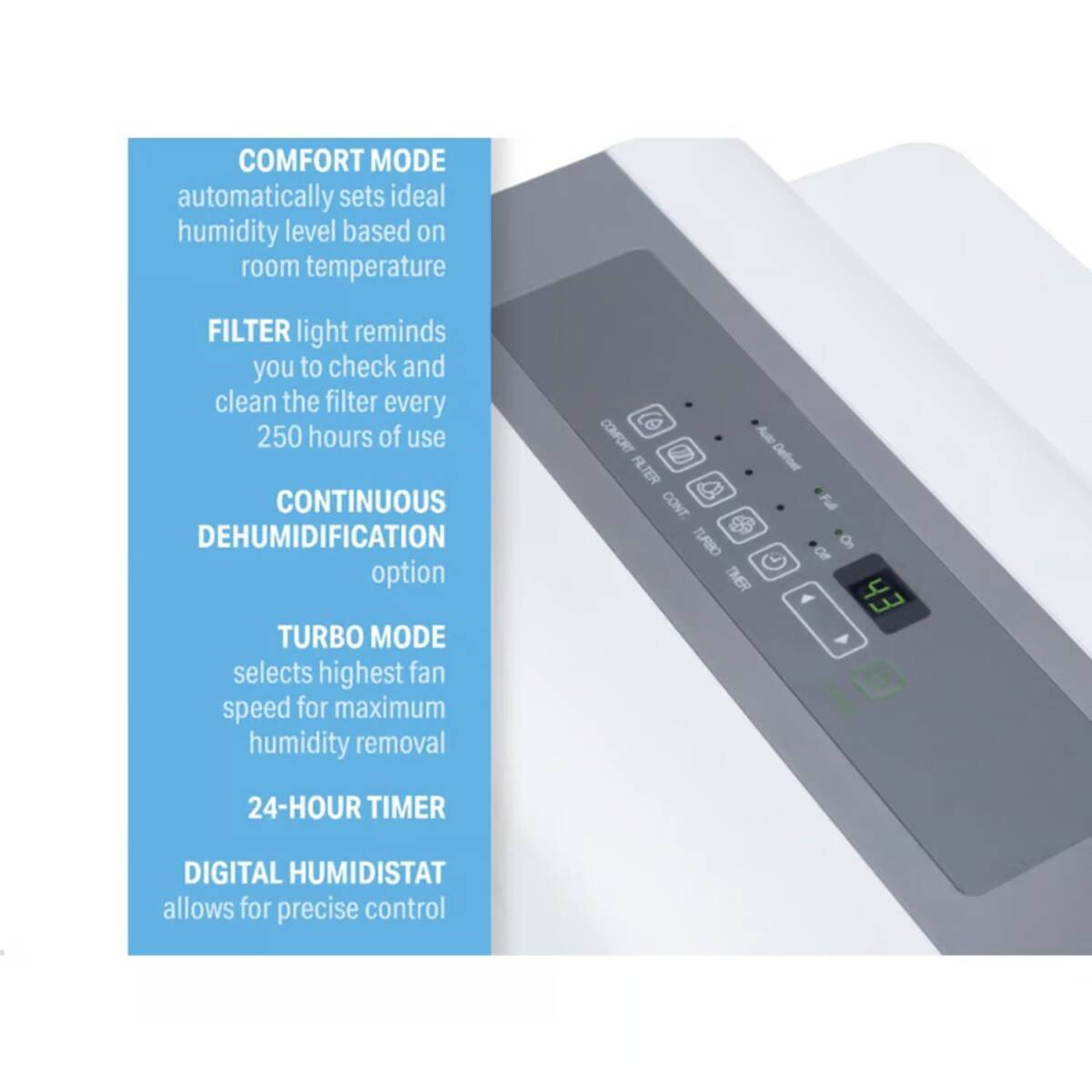 Fifty pints is a whole lot of water, can you imagine those tiny moisture particles floating through the air, creating an icky feeling of dampness. With this 50-pt energy star dehumidifier from Perfect Aire, you'll feel dry and comfortable in any season. It's powerful enough to remove the sticky humidity from large spaces up to 4,500 sq. ft. and it does so with quiet efficiency. You're in control with the adjustable humidistat and comfort option, which controls humidity based on room temperature.