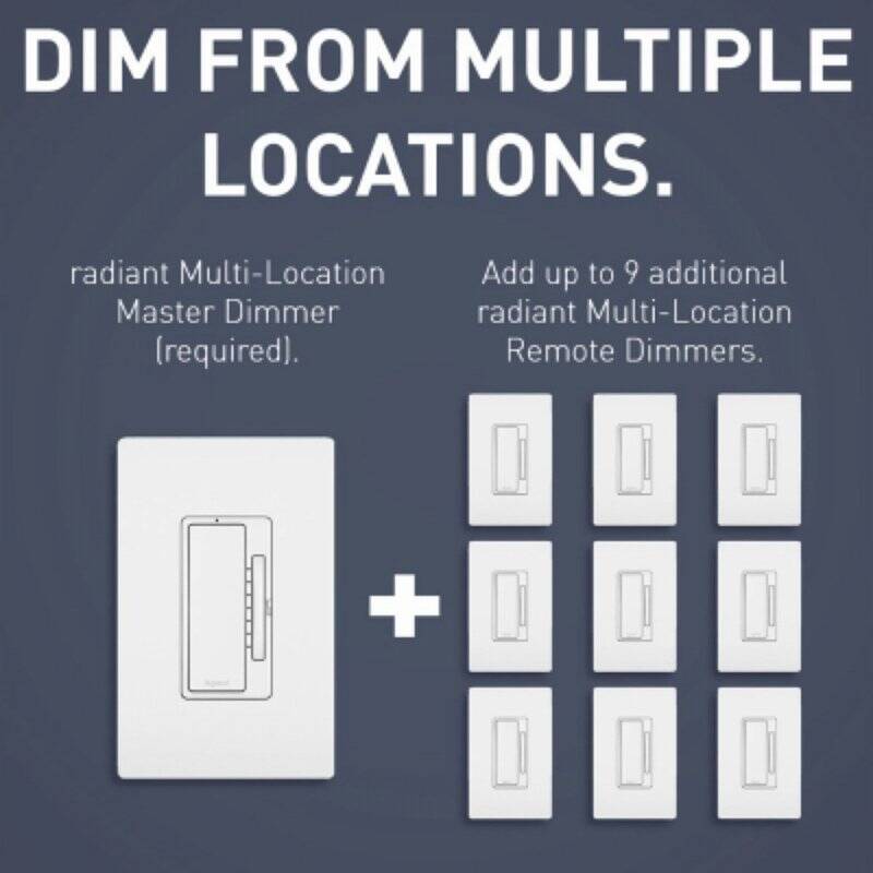 • Installs easily with three-way wiring for multi-location dimming (use with up to nine remote dimmers)