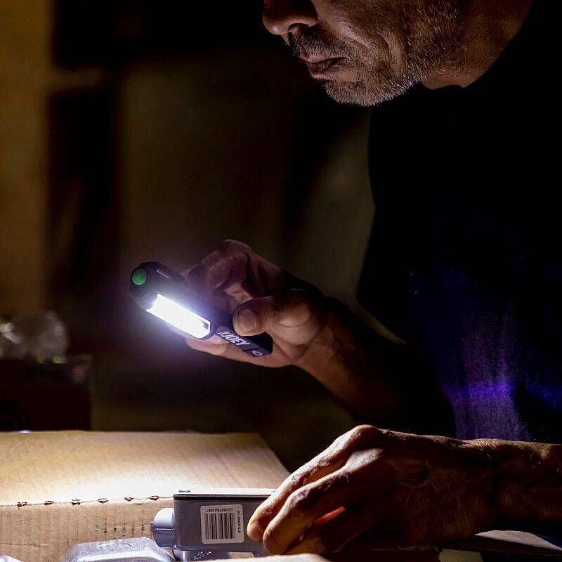 A great inspection pen light. Bright and compact. 200 lumens. Fits easily in pockets. Fast and convenient on/off. Pocket clip is magnetic and rotates 180 degrees. Work, home, toolbox, tackle box, glove box, Battery powered by 3 AAA batteries (included).