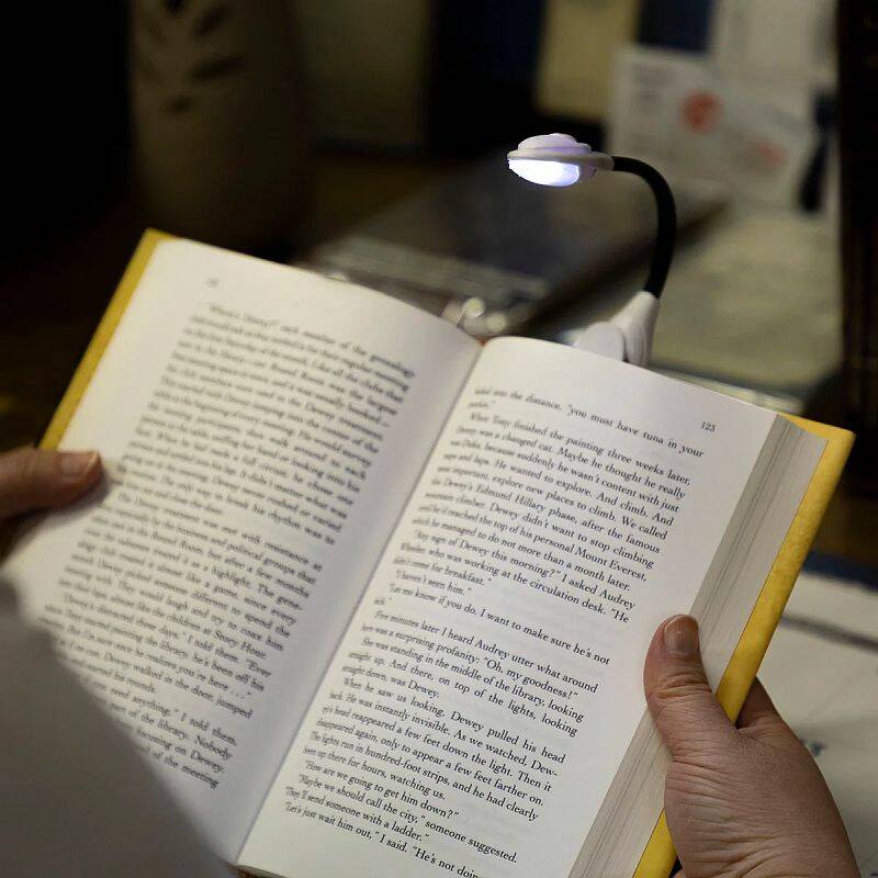 The LitezAll Clip On Book Light is battery-powered with a 48-hour runtime. 15 lumens of light is perfect for comfortably reading in dark environments. The 4.5-inch rubber coated gooseneck is fully adjustable in all directions. Easy slide on/off switch on top of the light.