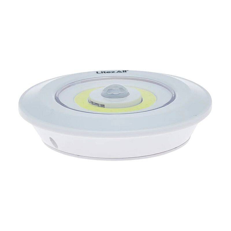 Introducing the LitezAll 100 Lumen Motion Activated Puck Light. With its sleek white color, this light blends seamlessly with any decor and provides a modern touch to your space. Measuring 3.5-inches in diameter and 1-inch in thickness, this compact light is perfect for installation in tight spaces, such as under cabinets. Its motion-activated feature ensures that you'll always have the light you need, when you need it.