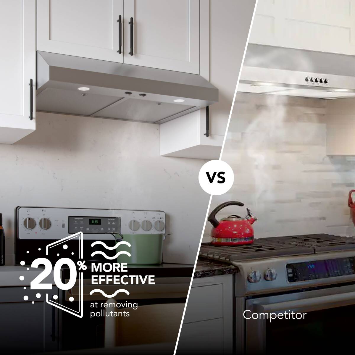 - 20% More Effective: Trust in the Broan-NuTone brand to more effectively remove pollutants in your kitchen than the leading competitor, with strong airflow at 350 Max Blower CFM
