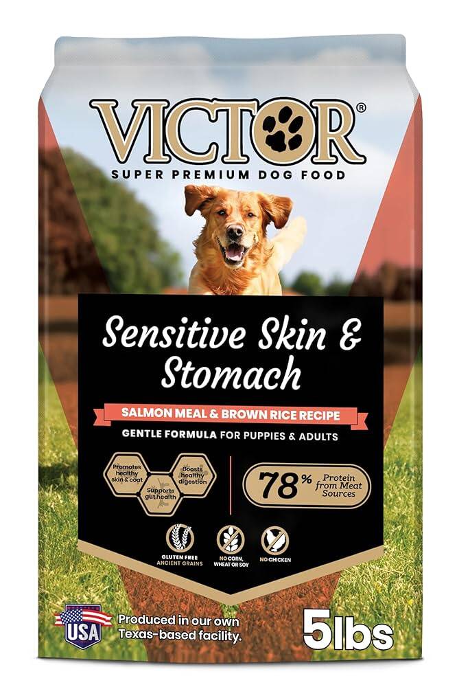 Sensitive Skin and Stomach Salmon Meal & Brown Rice Recipe is ideal for dogs with sensitivities or allergies. This digestible formula is gentle on the stomach and formulated without common allergens like gluten, chicken, corn, or soy. With omega 3 and 6, plus Vitamin E, this recipe supports a healthy coat and skin.