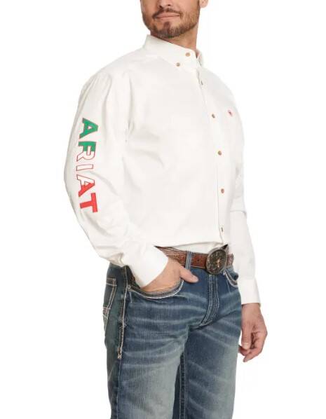 Ariat Men's Team Logo Twill Classic Fit White & Mexican Flag Size Large