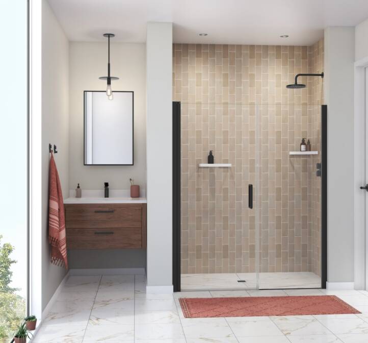 57-Inch To 59-Inch X 68 Inch Manhattan Matte Black Pivot Shower Door for Alcove