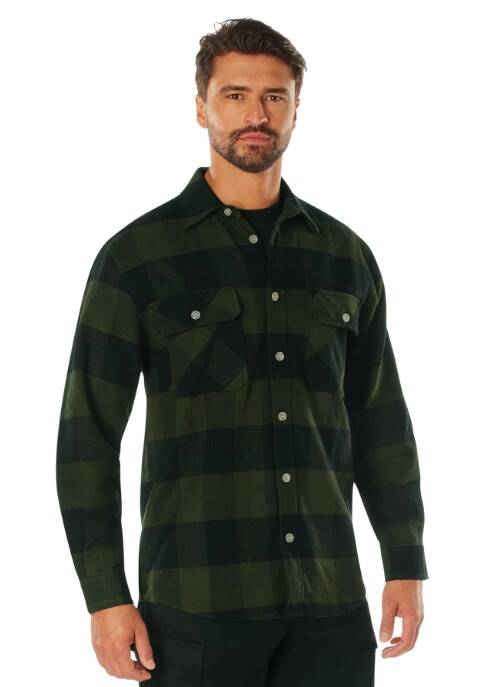 Rothco Extra Heavyweight Buffalo Plaid Flannel Shirt In Olive Drab Plaid, Size Small