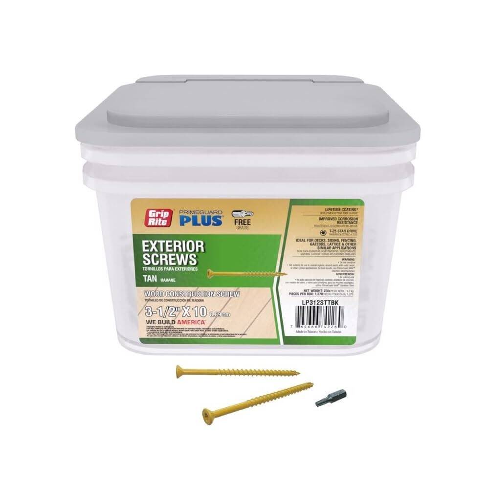 Grip-Rite Primeguard Plus No. 10 Wire X 3-1/2 Inch Length Tan Star Flat Head Deck Screws, 25 Pound