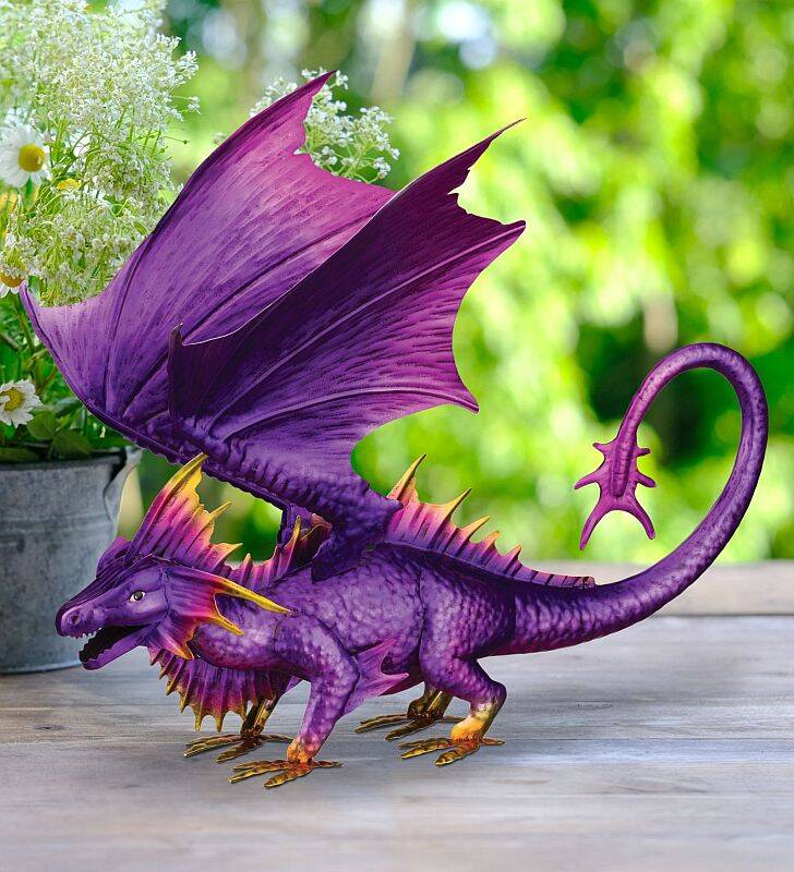 12-Inch Purple Metal Dragon Garden Décor