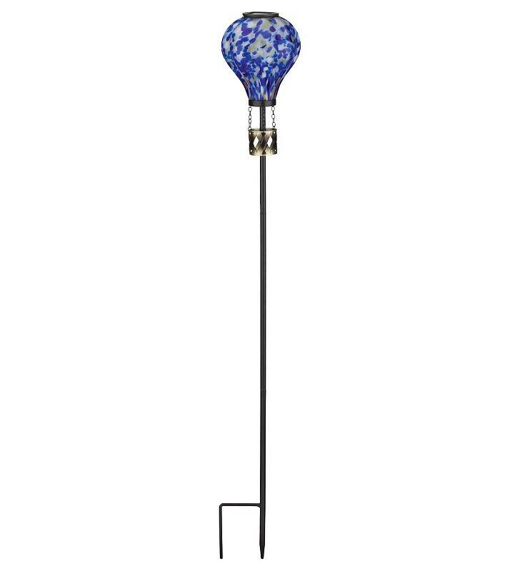 Blue Murano Hot Air Balloon Solar Garden Stake