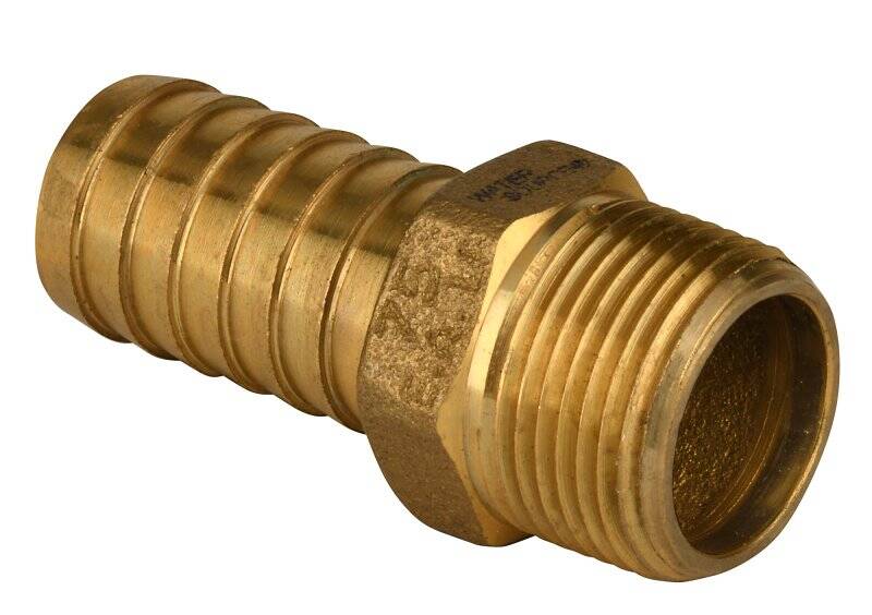 The 3/4 in brass male insert adapter connects PVC pipe to the barbed end and a threaded iron pipe to the female end. To minimize leaks, make sure all connections are tight. Use thread tape on all threaded connections.