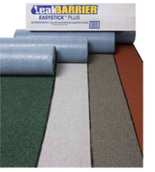 LeakBarrier EasyStick Plus™ is a premium, SBS modified, granule surfaced, polyester reinforced, self-adhesive modified bituminous cap sheet membrane for use in most low slope and steep slope roof system applications. EasyStick Plus is a perfect alternative to the application of roofing using conventional application methods of torching, hot asphalt mopping, or using cold applied adhesives.