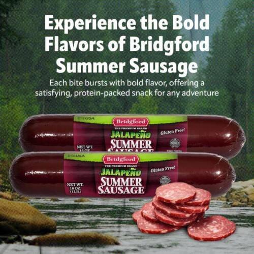 Bridgford Jalapeno Summer Sausages are a great shelf-stable, ready-to-eat meat snack made with pork and beef with the finest ingredients. This Jalapeno summer sausage delivers an authentic flavor experience that’s perfect for any occasion. Each 16 oz sausage is expertly seasoned and slow-smoked to perfection, ensuring a robust and delicious taste with every bite. Whether you’re hosting a party, enjoying a picnic, or simply craving a flavorful snack, Bridgford Jalapeno summer sausage is the ideal choice.