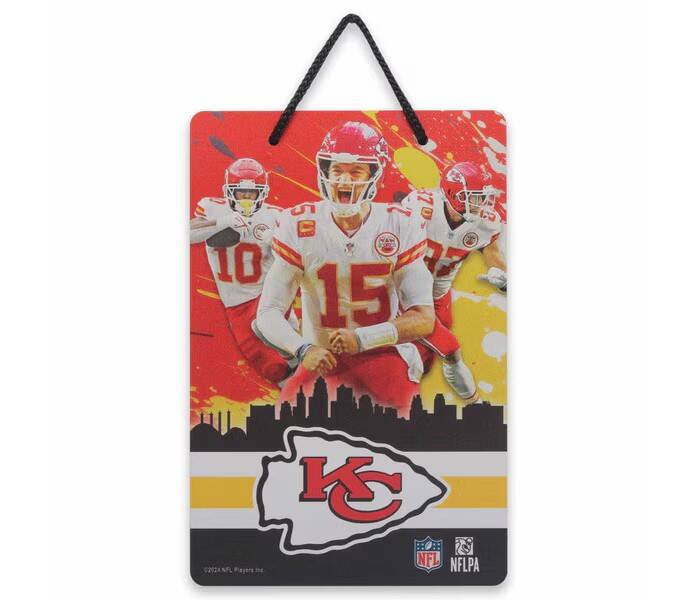 Add MVP energy to your walls with this Kansas City Chiefs Hanging X-Metal Sign. Featuring bold images of Patrick Mahomes and teammates in mid-play, this design bursts with red-and-yellow team pride. It’s a showstopping tribute to Chiefs Kingdom.
