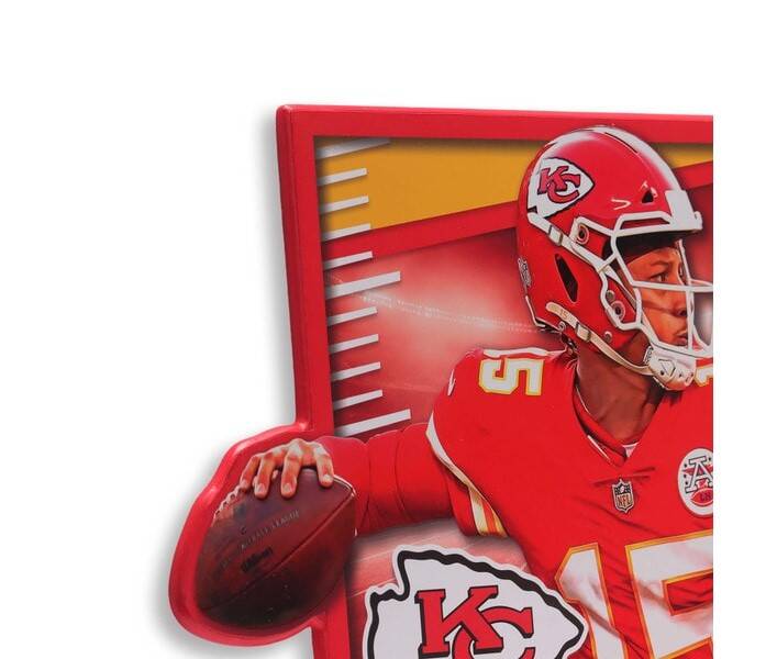 Bring the electrifying energy of the gridiron to your space with this fan-favorite wall decor showcasing Patrick Mahomes in action! Mahomes is shown with the ball in hand, looking to make another pass that will undoubtedly lead his team to a thrilling victory and leave fans in awe of his incredible skill.